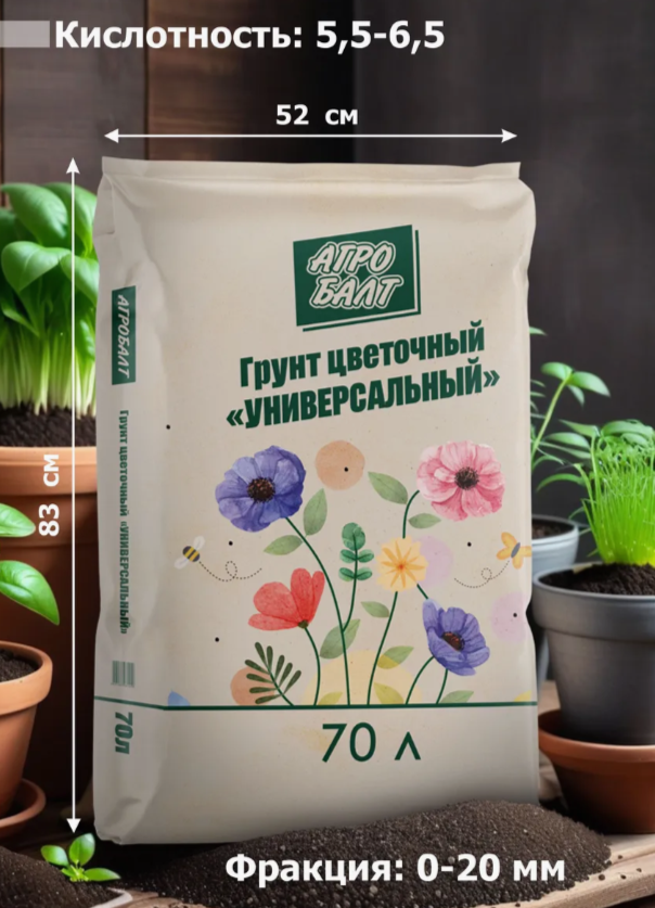 Грунт для рассады универсальный от бренда Агробалт объемом 70 литров – это идеальное решение для успешного выращивания рассады цветов, овощей и других растений. Этот грунт, состоящий из торфа низинного и переходного, обладает оптимальной влажностью (не более 70%) и создает благоприятные условия для развития корневой системы. Универсальный состав земли подходит для выращивания различных культур, в том числе для газонных трав, цветов и даже грибов. Благодаря богатому составу, грунт обеспечивает растениям необходимые питательные вещества, способствуя их здоровому росту и цветению. Торф низинный в составе грунта улучшает структуру почвы, делая ее рыхлой и воздухопроницаемой, что способствует лучшему доступу кислорода к корням. Земля для рассады цветов – это залог крепкой и здоровой рассады, которая с легкостью приживется.