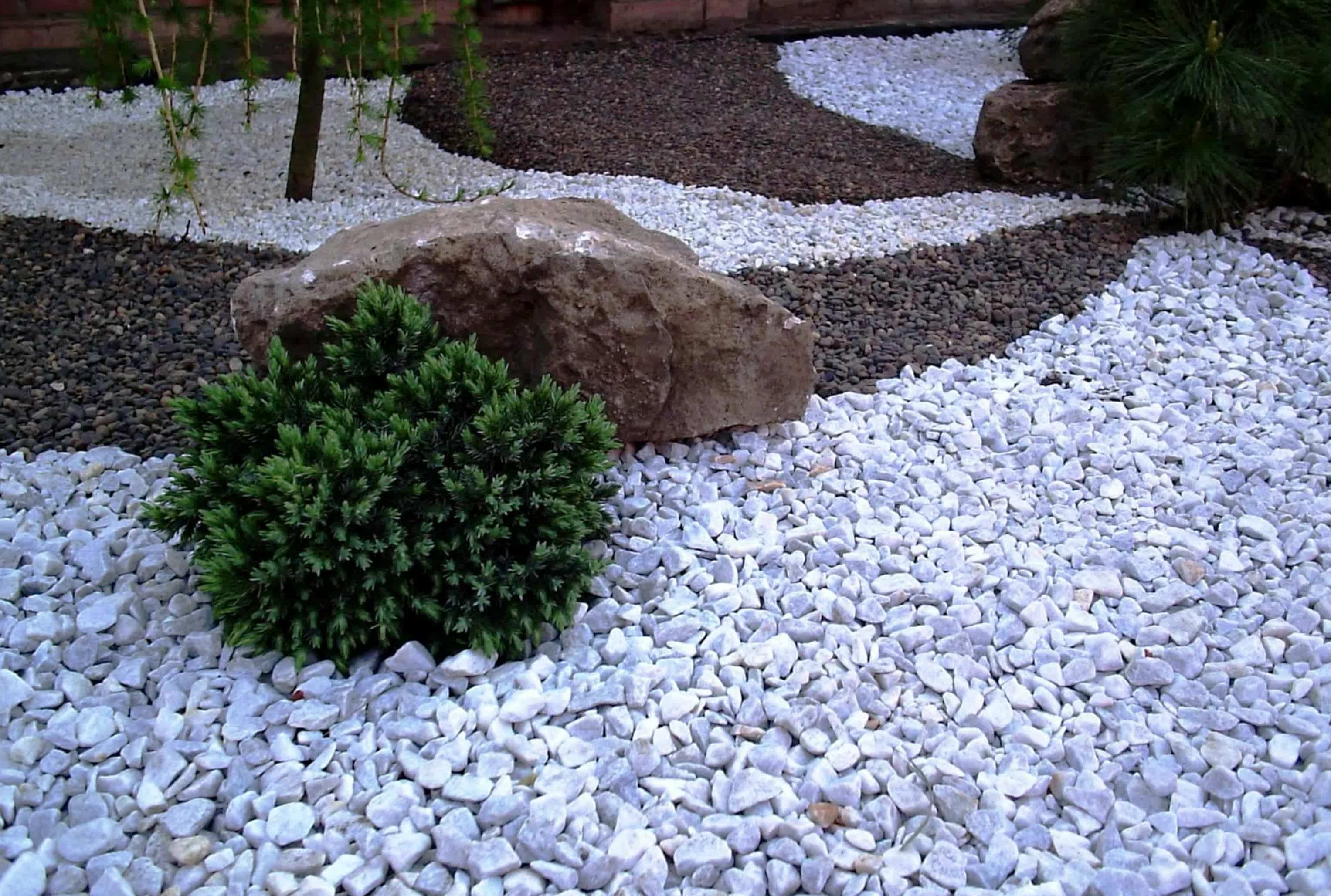 Каменная крошка не только служит великолепным украшением участка, но выполняет и чисто практические функции. Например, посыпанная вокруг растений, она защищает почву от перегрева и высыхания, останавливает рост сорняков.