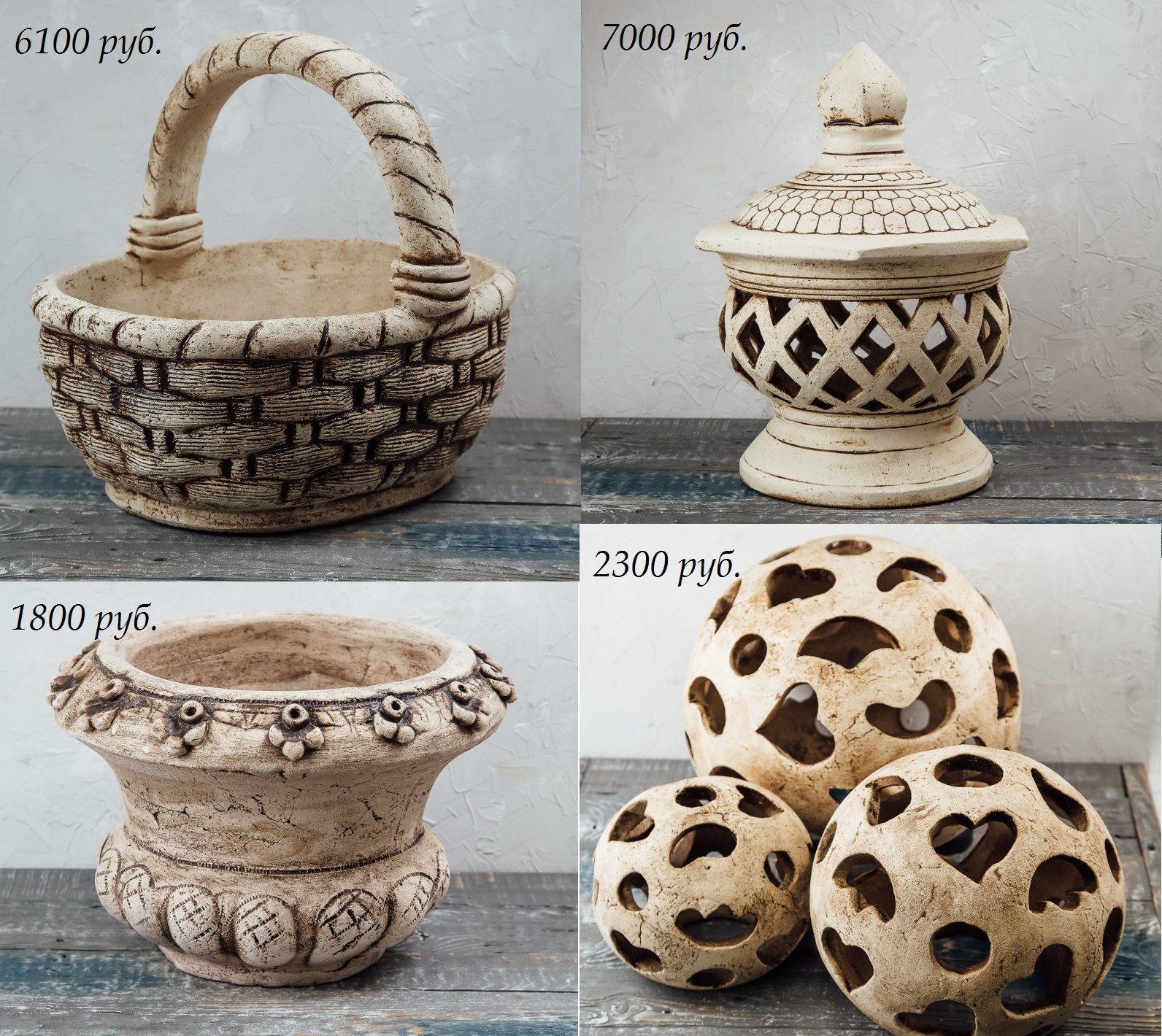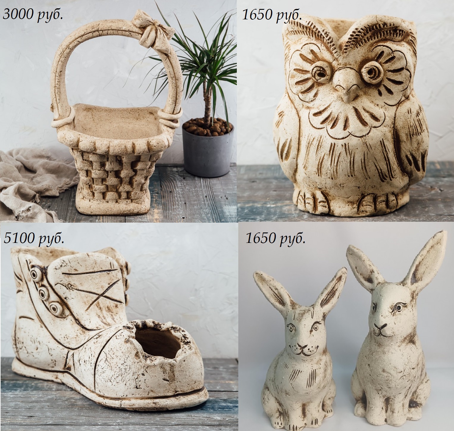 В продаже кашпо, светильники, фигуры для сада из керамики.
